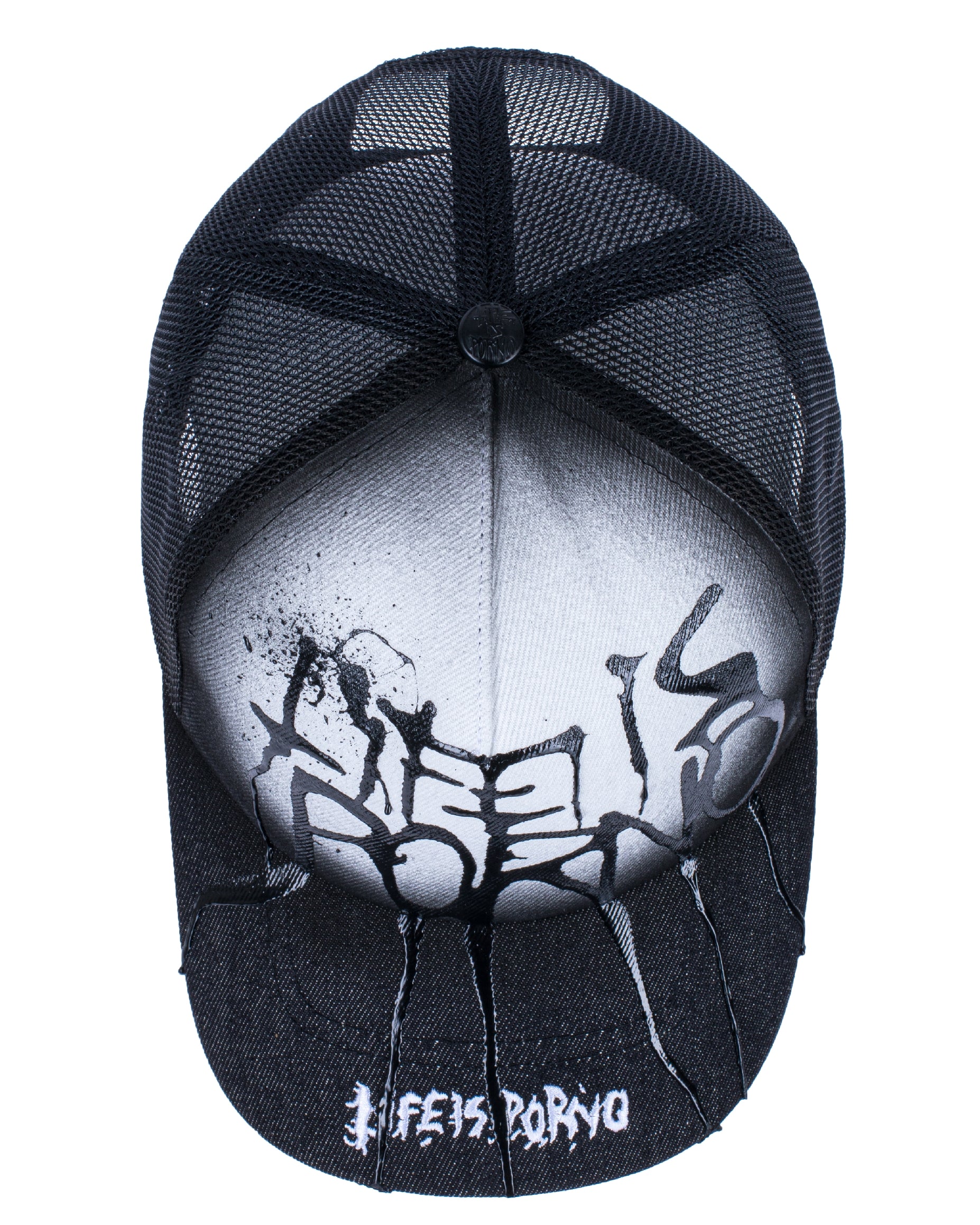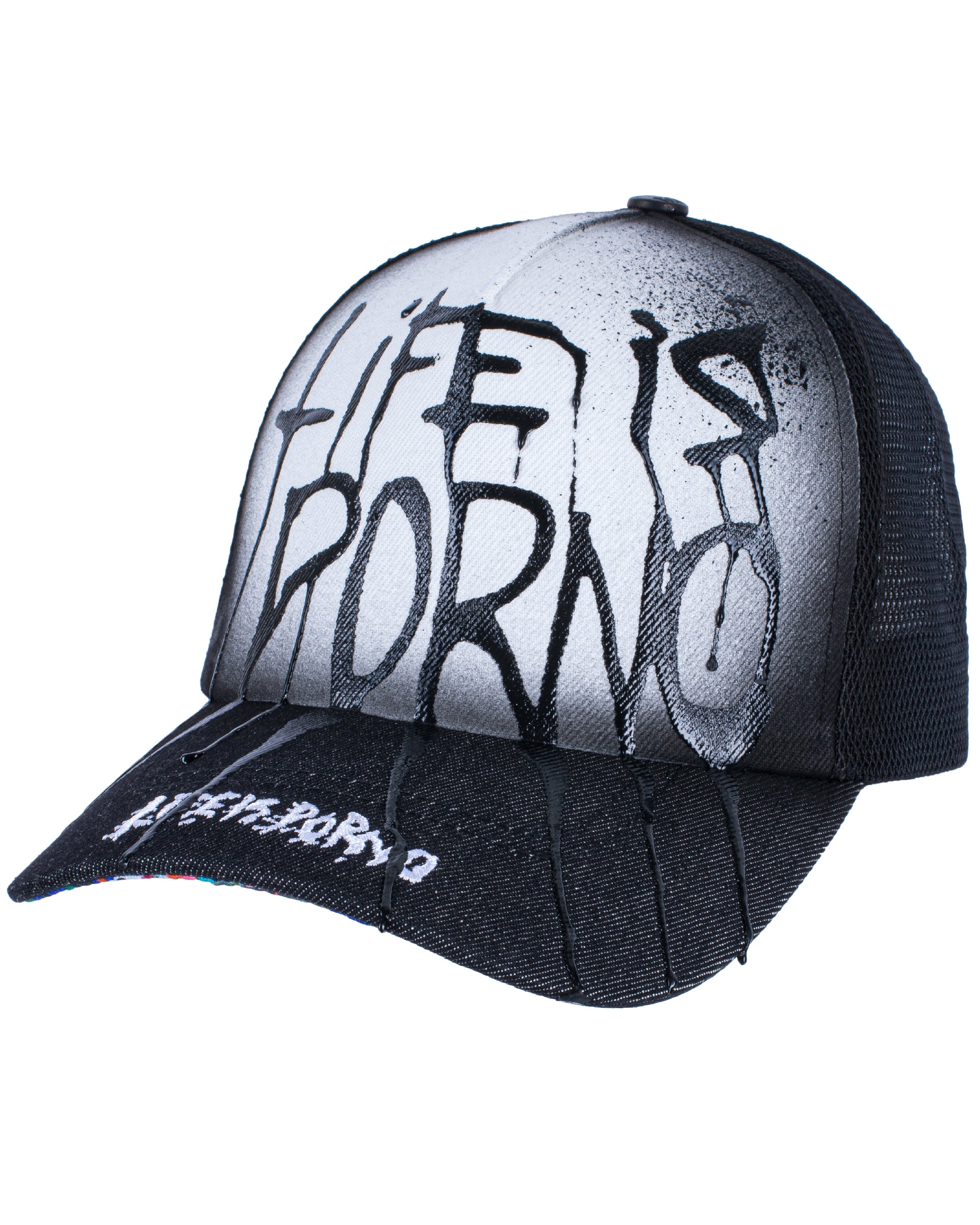 Kšiltovka je naše klasik truckerka se síťovinou vzadu, 3D výšivkou „LifeisPorno” vpředu a barevnýma details pod kšiltem. Nechybí ani „LIP” pin po straně a zapínání vzadu.