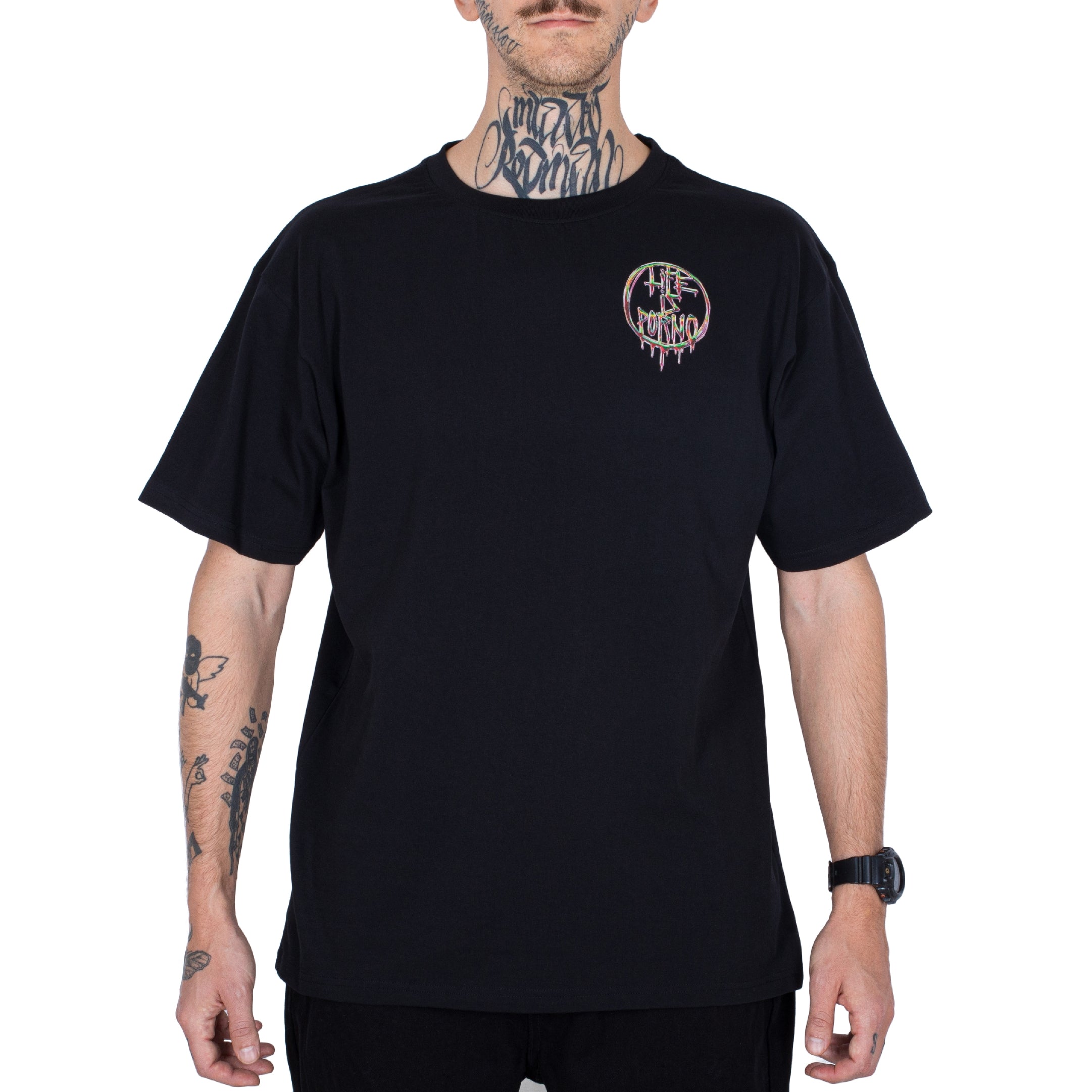 Vpredu naše klasické kruhové logo, vzadu rýchly print ako z hollywoodskeho filmového plagátu. Nechýba ani gumená nášivka dole na zadnej strane.