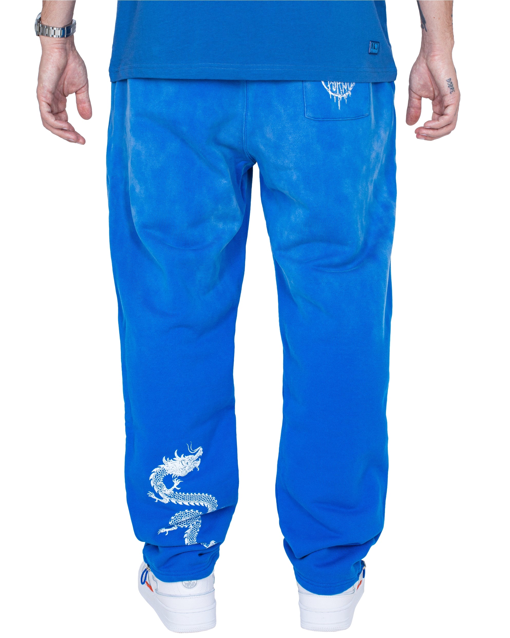 NY Sweatpants jsou totální fire, a to doslova. Vpředu najdeš decentní logo, zatímco vzadu je motiv draka a signature design na zadní kapse. Sepraná barva (speciální “acid” a “spray” wash) tomu všemu dodává ještě větší grády.