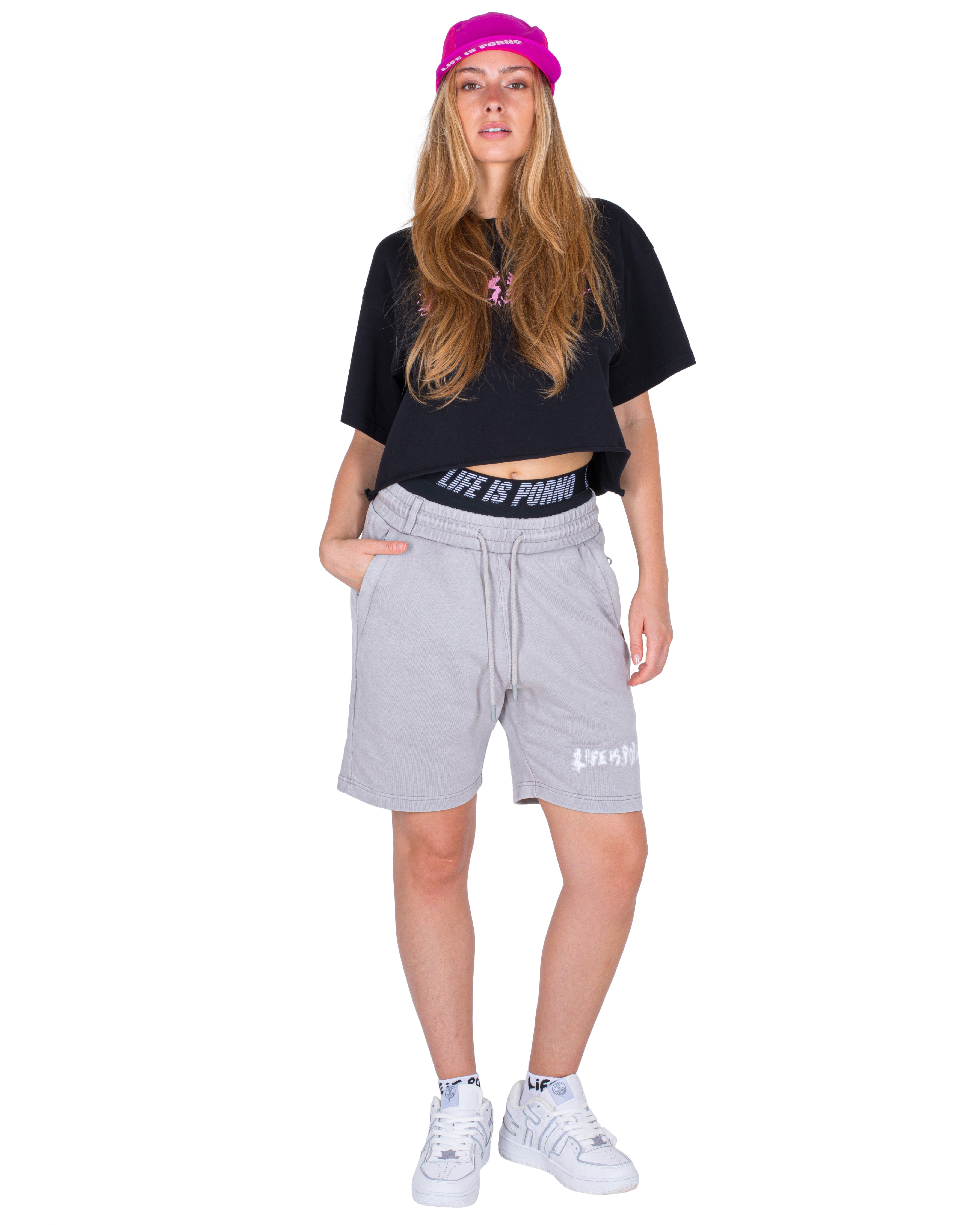 Kraťasy majú spraný efekt a v páse si ich stiahneš šnúrkou. Easy.